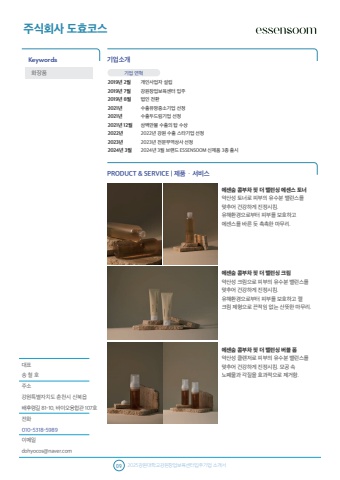 %ub300%ud45c %uc1a1 %ucca0 %ud638%uc8fc%uc18c%uac15%uc6d0%ud2b9%ubcc4%uc790%uce58%ub3c4 %ucd98%ucc9c%uc2dc %uc2e0%ubd81%uc74d %ubc30%ud6c4%ub839%uae38 81-10, %ubc14%uc774%uc624%uc735%ud569%uad00 107%ud638%uc804%ud654010-5318-5989%uc774%uba54%uc77cdohyocos@naver.com%uae30%uc5c5%uc18c%uac1cPRODUCT & SERVICE | %uc81c%ud488%u00b7%uc11c%ube44%uc2a4%uc8fc%uc2dd%ud68c%uc0ac %ub3c4%ud6a8%ucf54%uc2a4Keywords09 2025%uac15%uc6d0%ub300%ud559%uad50%uac15%uc6d0%ucc3d%uc5c5%ubcf4%uc721%uc13c%ud130%uc785%uc8fc%uae30%uc5c5 %uc18c%uac1c%uc11c%ud654%uc7a5%ud488 %uae30%uc5c5 %uc5f0%ud601%uc5d0%uc13c%uc228 %ucf64%ubd80%ucc28 %ud54f %ub354 %ubc38%ub7f0%uc2f1 %uc5d0%uc13c%uc2a4 %ud1a0%ub108%uc57d%uc0b0%uc131 %ud1a0%ub108%ub85c %ud53c%ubd80%uc758 %uc720%uc218%ubd84 %ubc38%ub7f0%uc2a4%ub97c %ub9de%ucd94%uc5b4 %uac74%uac15%ud558%uac8c %uc9c4%uc815%uc2dc%ud0b4. %uc720%ud574%ud658%uacbd%uc73c%ub85c%ubd80%ud130 %ud53c%ubd80%ub97c %ubcf4%ud638%ud558%uace0 %uc5d0%uc13c%uc2a4%ub97c %ubc14%ub978 %ub4ef %ucd09%ucd09%ud55c %ub9c8%ubb34%ub9ac.%uc5d0%uc13c%uc228 %ucf64%ubd80%ucc28 %ud54f %ub354 %ubc38%ub7f0%uc2f1 %ud06c%ub9bc%uc57d%uc0b0%uc131 %ud06c%ub9bc%uc73c%ub85c %ud53c%ubd80%uc758 %uc720%uc218%ubd84 %ubc38%ub7f0%uc2a4%ub97c %ub9de%ucd94%uc5b4 %uac74%uac15%ud558%uac8c %uc9c4%uc815%uc2dc%ud0b4. %uc720%ud574%ud658%uacbd%uc73c%ub85c%ubd80%ud130 %ud53c%ubd80%ub97c %ubcf4%ud638%ud558%uace0 %uc824 %ud06c%ub9bc %uc81c%ud615%uc73c%ub85c %ub048%uc801%uc784 %uc5c6%ub294 %uc0b0%ub73b%ud55c %ub9c8%ubb34%ub9ac.%uc5d0%uc13c%uc228 %ucf64%ubd80%ucc28 %ud54f %ub354 %ubc38%ub7f0%uc2f1 %ubc84%ube14 %ud3fc%uc57d%uc0b0%uc131 %ud074%ub80c%uc800%ub85c %ud53c%ubd80%uc758 %uc720%uc218%ubd84 %ubc38%ub7f0%uc2a4%ub97c %ub9de%ucd94%uc5b4 %uac74%uac15%ud558%uac8c %uc9c4%uc815%uc2dc%ud0b4. %ubaa8%uacf5 %uc18d %ub178%ud3d0%ubb3c%uacfc %uac01%uc9c8%uc744 %ud6a8%uacfc%uc801%uc73c%ub85c %uc81c%uac70%ud568.%uac1c%uc778%uc0ac%uc5c5%uc790 %uc124%ub9bd%uac15%uc6d0%ucc3d%uc5c5%ubcf4%uc721%uc13c%ud130 %uc785%uc8fc%ubc95%uc778 %uc804%ud658%uc218%ucd9c%uc720%ub9dd%uc911%uc18c%uae30%uc5c5 %uc120%uc815%uc218%ucd9c%ub450%ub4dc%ub9bc%uae30%uc5c5 %uc120%uc815%uc0bc%ubc31%ub9cc%ubd88 %uc218%ucd9c%uc758 %ud0d1 %uc218%uc0c12022%ub144 %uac15%uc6d0 %uc218%ucd9c %uc2a4%ud0c0%uae30%uc5c5 %uc120%uc815 2023%ub144 %uc804%ubb38%ubb34%uc5ed%uc0c1%uc0ac %uc120%uc8152024%ub144 3%uc6d4 %ube0c%ub79c%ub4dc ESSENSOOM %uc2e0%uc81c%ud488 3%uc885 %ucd9c%uc2dc2019%ub144 2%uc6d42019%ub144 7%uc6d42019%ub144 8%uc6d42021%ub1442021%ub1442021%ub144 12%uc6d42022%ub1442023%ub1442024%ub144 3%uc6d4
