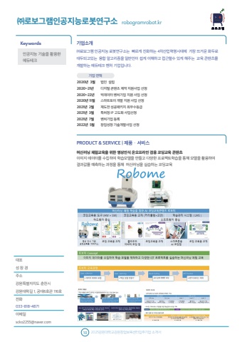 %ub300%ud45c %uc131 %ucc3d %uacbd%uc8fc%uc18c%uac15%uc6d0%ud2b9%ubcc4%uc790%uce58%ub3c4 %ucd98%ucc9c%uc2dc%uac15%uc6d0%ub300%ud559%uae38 1, %uacf5%ub3006%ud638%uad00 116%ud638%uc804%ud654033-818-4871%uc774%uba54%uc77cscko2255@naver.com%uae30%uc5c5%uc18c%uac1cPRODUCT & SERVICE | %uc81c%ud488%u00b7%uc11c%ube44%uc2a4Keywords10 2025%uac15%uc6d0%ub300%ud559%uad50%uac15%uc6d0%ucc3d%uc5c5%ubcf4%uc721%uc13c%ud130%uc785%uc8fc%uae30%uc5c5 %uc18c%uac1c%uc11c%uae30%uc5c5 %uc5f0%ud601%uc778%uacf5%uc9c0%ub2a5 %uae30%uc220%uc744 %ud65c%uc6a9%ud55c%uc5d0%ub4c0%ud14c%ud06c%uba38%uc2e0%ub7ec%ub2dd %uccb4%ud5d8%uad50%uc721%uc744 %uc704%ud55c %uc601%uc0c1%uc778%uc2dd %uc628%uc624%ud504%ub77c%uc778 %uacb8%uc6a9 %ucf54%ub529%uad50%uc721 %ucf58%ud150%uce20%uc774%ubbf8%uc9c0 %ub370%uc774%ud130%ub97c %uc218%uc9d1%ud558%uc5ec %ud559%uc2b5%ubaa8%ub378%uc744 %ub9cc%ub4e4%uace0 %ub2e4%uc591%ud55c %ud504%ub85c%uc81d%ud2b8%ud559%uc2b5%uc744 %ud1b5%ud574 %ubaa8%ub378%uc744 %ud65c%uc6a9%ud558%uc5ec %uacb0%uacfc%uac12%ub97c %uc608%uce21%ud558%ub294 %uacfc%uc815%uc744 %ud1b5%ud574 %uba38%uc2e0%ub7ec%ub2dd%uc744 %uc2e4%uc2b5%ud558%ub294 %ucf54%ub529%uad50%uc721%u321c%ub85c%ubcf4%uadf8%ub7a8%uc778%uacf5%uc9c0%ub2a5%ub85c%ubd07%uc5f0%uad6c%uc18c robogramrobot.kr%u321c%ub85c%ubcf4%uadf8%ub7a8 %uc778%uacf5%uc9c0%ub2a5 %ub85c%ubd07%uc5f0%uad6c%uc18c%ub294 %ube60%ub974%uac8c %uc9c4%ud654%ud558%ub294 4%ucc28%uc0b0%uc5c5%ud601%uba85%uc2dc%ub300%uc5d0 %uac00%uc7a5 %ub728%uac70%uc6b4 %ud654%ub450%ub85c %ub300%ub450%ub418%uace0%uc788%ub294 %uc735%ud569 %uc54c%uace0%ub9ac%uc998%uc744 %uc77c%ubc18%uc778%uc774 %uc27d%uac8c %uc774%ud574%ud558%uace0 %uc811%uadfc%ud560%uc218 %uc788%uac8c %ud574%uc8fc%ub294 %uad50%uc721 %ucf58%ud150%uce20%ub97c %uac1c%ubc1c%ud558%ub294 %uc5d0%ub4c0%ud14c%ud06c %ubca4%ucc98 %uae30%uc5c5%uc785%ub2c8%ub2e4.%ubc95%uc778 %uc124%ub9bd%ub514%uc9c0%ud138 %ucf58%ud150%uce20 %uc81c%uc791 %uc9c0%uc6d0%uc0ac%uc5c5 %uc120%uc815%ube45%ub370%uc774%ud130 %ubca4%ucc98%uae30%uc5c5 %uc9c0%uc6d0 %uc0ac%uc5c5 %uc120%uc815%uc2a4%ub9c8%ud2b8%ud1a0%uc774 %uac1c%ubc1c %uc9c0%uc6d0 %uc0ac%uc5c5 %uc120%uc815%uc7ac%ub3c4%uc804 %uc131%uacf5%ud328%ud0a4%uc9c0 %ucd5c%uc6b0%uc218%ub4f1%uae09%ud2b9%ud5c8%uccad IP %uace0%ub3c4%ud654 %uc0ac%uc5c5%uc120%uc815%ubca4%ucc98%uae30%uc5c5 %ub4f1%ub85d%ucc3d%uc5c5%uc131%uc7a5 %uae30%uc220%uac1c%ubc1c%uc0ac%uc5c5 %uc120%uc8152020%ub144 3%uc6d42020~21%ub1442020~22%ub1442020%ub144 11%uc6d42021%ub144 2%uc6d42021%ub144 3%uc6d42021%ub144 7%uc6d42022%ub144 5%uc6d4