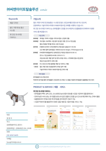 %ub300%ud45c %uc815 %ud604 %uc11d%uc8fc%uc18c%uac15%uc6d0%ud2b9%ubcc4%uc790%uce58%ub3c4 %ucd98%ucc9c%uc2dc%uac15%uc6d0%ub300%ud559%uae38 1, %uacf5%ub3006%ud638%uad00 204, 205%ud638%uc804%ud654010-8747-8475%uc774%uba54%uc77chjung0044@cnits.kr%uae30%uc5c5%uc18c%uac1cPRODUCT & SERVICE | %uc81c%ud488%u00b7%uc11c%ube44%uc2a4Keywords23 2025%uac15%uc6d0%ub300%ud559%uad50%uac15%uc6d0%ucc3d%uc5c5%ubcf4%uc721%uc13c%ud130%uc785%uc8fc%uae30%uc5c5 %uc18c%uac1c%uc11c%uae30%uc5c5 %uc5f0%ud601%uc81c%ud488 %ub514%uc790%uc778%ucca0%ub3c4 %ucc28%ub7c9 %ubc29%uc1a1 %ud1b5%uc2e0%uc2dc%uc2a4%ud15c%u321c%uc528%uc564%uc544%uc774%ud1a0%ud0c8%uc194%ub8e8%uc158 cnits.kr%ud3ab %uac74%uac15 %ubaa8%ub2c8%ud130%ub9c1%ub514%ubc14%uc774%uc2a4%ucca0%ub3c4 %ucc28%ub7c9 %ub514%uc790%uc778 %ubc0f %ubc29%uc1a1%ud1b5%uc2e0 %uc2dc%uc2a4%ud15c %ub4f1 %ucca0%ub3c4 %uc0b0%uc5c5 %ubd84%uc57c%ub97c %uc804%ubb38%uc73c%ub85c %ud558%uace0 %uc788%uc73c%uba70, %uac15%uc6d0%ub300%ud559%uad50 %uae30%uc220%uc9c0%uc8fc%ud68c%uc0ac%uc790%ud68c%uc0ac R&BD%uc9c0%uc6d0%uc0ac%uc5c5 %uacfc%uc81c%ub97c %uc218%ud589%ud558%uace0 %uc788%uc2b5%ub2c8%ub2e4.%ud3ab %uac74%uac15 %ubaa8%ub2c8%ud130%ub9c1 %ub514%ubc14%uc774%uc2a4%ub294 %ubc18%ub824%ub3d9%ubb3c%uc758 %uac74%uac15%uc744 %ubaa8%ub2c8%ud130%ub9c1%ud558%uace0 %ub3d9%ubb3c%ubcd1%uc6d0%uacfc %uc5f0%uacc4%ud558%uc5ec %ub2e4%uc591%ud55c %uc11c%ube44%uc2a4%ub97c %uc81c%uacf5%ud569%ub2c8%ub2e4.%ud3ab %uac74%uac15 %ubaa8%ub2c8%ud130%ub9c1 %ub514%ubc14%uc774%uc2a4- %ubc18%ub824%ub3d9%ubb3c%uc758 %ub9e5%ubc15, %uc2ec%ubc15, %uc628%ub3c4, %uc0b0%uc18c%ud3ec%ud654%ub3c4(SpO2)%ub4f1%uc758 %uc815%ubcf4%ub97c %uc218%uc9d1%ubc0f %uac00%uacf5%ud558%uc5ec %uc571%uc744 %ud1b5%ud574 %ud604%uc2dc- %uc5f0%uacc4%uac00%ub2a5%ud55c %uc11c%ube44%uc2a4%ub85c%ub294 %uc720%uae30%ub3d9%ubb3c %ubcf4%ud638%uc18c%uc640 %uac19%uc740 %ub3d9%ubb3c%uc758 %uac74%uac15%uc744 %uc2e4%uc2dc%uac04%uc73c%ub85c %ud655%uc778%ud574%uc57c %ud558%ub294 %uacf3%uc5d0%uc11c %ud65c%uc6a9- %ub3d9%ubb3c%ubcd1%uc6d0%uacfc%uc758 %uc5f0%uacc4%ub85c %ud1f4%uc6d0 %ud6c4 %ubc18%ub824%ub3d9%ubb3c %uad00%ub9ac%uc5d0 %uc6d0%uaca9 %uc9c4%ub8cc%uac00 %uac00%ub2a5- %uc218%uc9d1%ud55c %ube45%ub370%uc774%ud130%ub97c %ud65c%uc6a9%ud558%uc5ec %ub2e4%uc591%ud55c %uc0c1%ud488/ %ubcd1%uc6d0 %ub4f1 %uc0ac%uc6a9%uc790 %ub9de%ucda4 %uc11c%ube44%uc2a4 %uac00%ub2a52003%ub1442009%ub1442017%ub1442018%ub1442021%ub144 ~2022%ucf00%uc774%ube14, %ucee4%ub125%ud130 %uc0ac%uc5c5%uc744 %uc2dc%uc791%uc73c%ub85c %ucca0%ub3c4 %uc0b0%uc5c5%uc5d0 %uc9c4%ucd9c%uad6d%ub0b4 %ucca0%ub3c4 %ud504%ub85c%uc81d%ud2b8 %uc0ac%uc5c5 %ucc38%uc5ec %ubc0f %ubc95%uc778 %uc804%ud658, %uc5f0%uad6c%uc18c%uae30%uc5c5 %uc124%ub9bd%ucca0%ub3c4/%uc758%ub8cc%uc6a9 %ucf00%uc774%ube14 %ud558%ub124%uc2a4 %uc0dd%uc0b0 %ubc0f %uacf5%uae09%u321c%uc5e0%ube44%ub514%ucf54%ub9ac%uc544 %ub514%uc790%uc778%uc564%uc5d4%uc9c0%ub2c8%uc5b4%ub9c1 %ubc95%uc778 %uc124%ub9bd(2017.09.18)%uc2e0%uaddc %ud574%uc678 %ud611%ub825 %uc5c5%uccb4 %ubc1c%uad74 / MBD(industrial design), STEE(singapore) %ub4f1%u321c%uc528%uc564%uc544%uc774%ud1a0%ud0c8%uc194%ub8e8%uc158 %uc0c1%ud638%ubcc0%uacbd %ubc0f %uc790%ubcf8%uae08 %ubcc0%uacbd(2018.08.14.)%uc5f0%uad6c%uc18c %uae30%uc5c5 %ub4f1%ub85d(%uc81c 640%ud638) (2018.10.11.)%ucf54%ub529%uad50%uc721 %ub85c%ubd07 %uac1c%ubc1c %uc5c5%ubb34 %ubc0f %uc5d4%uc9c0%ub2c8%uc5b4%ub9c1 %uc11c%ube44%uc2a4 %uc2dc%uc791(%ud574%uc678 %ucca0%ub3c4%uc0ac%uc5c5 %ubd84%uc57c)%uc7ac%ub3c4%uc804 %uc131%uacf5 %ud328%ud0a4%uc9c0 %uacfc%uc81c %uc218%ud589Pet %uac74%uac15 %ubaa8%ub2c8%ud130%ub9c1 %ud50c%ub7ab%ud3fc %uac1c%ubc1c %ubc0f %ub514%ubc14%uc774%uc2a4 %uac1c%ubc1c%ucca0%ub3c4 %ucc28%ub7c9 %uc804%ubb38 %ucee8%uc124%ud305/%uc5d4%uc9c0%ub2c8%uc5b4%ub9c1 %uc5c5%ubb34 %uc218%ud589%uae30%uc220%uc9c0%uc8fc%ud68c%uc0ac %uc790%ud68c%uc0ac R&BD%uc9c0%uc6d0%uc0ac%uc5c5 %uacfc%uc81c %uc218%ud589%ubc18%ub824%ub3d9%ubb3c%uc758 %ubaa8%ub2c8%ud130%ub9c1 %uc7a5%uce58%ube45%ub370%uc774%ud130 %ubd84%uc11d%uc744 %ud1b5%ud55c %ubc18%ub824%ub3d9%ubb3c%uc758 %uac74%uac15%uc0c1%ud0dc %ubaa8%ub2c8%ud130%ub9c1 %uc2dc%uc2a4%ud15c%uc744 %uc774%uc6a9%ud55c %ubc18%ub824%ub3d9%ubb3c%uc758 %ub3cc%ucd9c%ud589%ub3d9 %ucc28%ub2e8 %uc7a5%uce58%ud2b9%ud5c8 %ucd9c%uc6d0