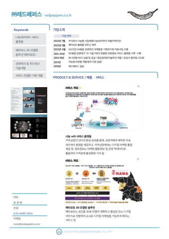 %uc11c%ube44%uc2a4 %ucee8%uc124%ud305fi%uae30%ud68dfi%uac1c%ubc1c%ub300%ud45c %uc724 %uad11 %uc601%uc804%ud654070-4499-1004%uc774%uba54%uc77cJune@redpeppers.co.kr%uae30%uc5c5%uc18c%uac1cPRODUCT & SERVICE | %uc81c%ud488%u00b7%uc11c%ube44%uc2a4%u321c%ub808%ub4dc%ud398%ud37c%uc2a4 redpeppers.co.krKeywords04 2025%uac15%uc6d0%ub300%ud559%uad50%uac15%uc6d0%ucc3d%uc5c5%ubcf4%uc721%uc13c%ud130%uc878%uc5c5%uae30%uc5c5 %uc18c%uac1c%uc11c%ub098%ub214%uc640%uc774%ud30c%uc774 %uc11c%ube44%uc2a4 %uae30%uc5c5 %uc5f0%ud601%ud50c%ub7ab%ud3fc%uba54%ud0c0%ubc84%uc2a4 3D %ubaa8%ub378%ub9c1 %uc194%ub8e8%uc158 (%ub9e4%ud0c0%ud3ec%ud2b8)%uad00%uad11%ud14c%ud06c %ubc0f %ud478%ub4dc%ud14c%ud06c %uae30%uc220%uac1c%ubc1c2022%ub144 7%uc6d42022%ub144 5%uc6d4 2022%ub144 4%uc6d42021-20%ub1442019-18%ub1442017%ub1442016%ub144%uc8fc%uc2dd%ud68c%uc0ac %ub098%ub214%ub7a9 %uc0ac%uc5c5%uc81c%ud734(%ub098%ub214%uc640%uc774%ud30c%uc774 %uc5b4%ud50c%ub9ac%ucf00%uc774%uc158)%ub9e4%ud0c0%ud3ec%ud2b8 %ud50c%ub7ab%ud3fc %ud30c%ud2b8%ub108 %uacc4%uc57d2022%ub144 SW%uc735%ud569 %uad00%uad11%ud14c%ud06c %uacfc%uc81c%ubc1c%uad74 %uae30%ud68d%uc5f0%uad6c%ud68c %uc9c0%uc6d0%uc0ac%uc5c5 %uc218%ud589SW%uc735%ud569 %uad00%uad11%ud14c%ud06c %u201cAI %uae30%uc220%uae30%ubc18%uc758 %ub9de%ucda4%ud615 %uad00%uad11%uc815%ubcf4 %uc11c%ube44%uc2a4 %ud50c%ub7ab%ud3fc %uad6c%ucd95%u201d %uc218%ud589%ud558%ub098%uc740%ud589 IWCS %ub0a9%ud488 %ubc0f %uacf5%uae09 / %ube4c%ub529%uc784%ub300%uad00%ub9ac%uc194%ub8e8%uc158 %uac1c%ubc1c / %uad00%uacf5%uc11c %uceec%ub7ec%ub9c1 %uace0%ub3c4%ud654%uc9c0%ub2a5%ud615 %ube44%uc0c1%ubca8 %uac1c%ubc1c(%uad11%uc8fc%uc2dc%uccad %ub0a9%ud488)%ub808%ub4dc%ud398%ud37c%uc2a4 %uc124%ub9bd%ub098%ub214 wifi %uc11c%ube44%uc2a4 %ud50c%ub7ab%ud3fc%uc9c0%uc5ed%uc0c1%uc810%uc758 %uc778%ud130%ub137 %ud658%uacbd %uacf5%uc720%ub97c %ud1b5%ud574, %uad00%uad11%uac1d%uc5d0%uac8c %ucf8c%uc801%ud55c %ubb34%ub8cc %uc640%uc774%ud30c%uc774 %ud658%uacbd%uc744 %uc81c%uacf5%ud558%uace0, %uc9c0%uc5ed%uc0c1%uc810%uc5d0%uac8c%ub294 %ub514%uc9c0%ud138 %ub9c8%ucf00%ud305 %ud234%uc744 %uc81c%uacf5 %ud568. %uc811%uc18d%uc815%ubcf4%ub294 %ub9c8%ucf00%ud305 %ud65c%uc6a9%uc815%ubcf4 %ubc0f %uad00%uad11 %ube45%ub370%uc774%ud130%ub85c %ud65c%uc6a9%ud558%uc5ec %uc9c0%uc5ed%uacbd%uc81c %ud65c%uc131%ud654%uc5d0 %uae30%uc5ec %ud568.%ub9e4%ud0c0%ud3ec%ud2b8 3D %ubaa8%ub378%ub9c1 %uc194%ub8e8%uc158%ub9e4%ud0c0%ud3ec%ud2b8%ub294 %uacf5%uac04%uc744 3D%ub85c %ub9cc%ub4e4%uc5b4 %uc815%ud655%ud558%uace0 %ubab0%uc785%uac10 %uc788%ub294 %ub514%uc9c0%ud138 %uc774%ubbf8%uc9c0%ub85c %uc804%ud658%ud558%uc5ec %uc190%uc26c%uc6b4 %ub514%uc9c0%ud138 %ub9c8%ucf00%ud305%uc744 %uac00%ub2a5%ud558%uac8c %ud574%uc8fc%ub294 %uc11c%ube44%uc2a4 %uc784.