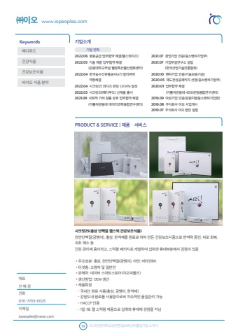 %ub300%ud45c %uc9c4 %ud61c %uacbd%uc804%ud654070-7703-0025%uc774%uba54%uc77ciopeoples@naver.com%uae30%uc5c5%uc18c%uac1cPRODUCT & SERVICE | %uc81c%ud488%u00b7%uc11c%ube44%uc2a4%u321c%uc774%uc624 www.iopeoples.comKeywords19 2025%uac15%uc6d0%ub300%ud559%uad50%uac15%uc6d0%ucc3d%uc5c5%ubcf4%uc721%uc13c%ud130%uc878%uc5c5%uae30%uc5c5 %uc18c%uac1c%uc11c%uba54%ub514%ud478%ub4dc%uac74%uac15%uc2dd%ud488%uac74%uac15%ubcf4%uc870%uc2dd%ud488%ubc14%uc774%uc624 %uc2dd%ud488 %ubd84%uc57c2022.06 %ubcd1%uc6d0%uacf5%uae09 %uc5c5%ubb34%ud611%uc57d %uccb4%uacb0(%ud5ec%uc2a4%uc640%uc774%uc988)2022.05 %uae30%uc220 %uac1c%ubc1c %uc5c5%ubb34%ud611%uc57d %uccb4%uacb0 (%uac15%uc6d0%ub300%ud559%uad50%ubd80%uc124 %uc6f0%ube59%ud2b9%uc0b0%ubb3c%uc0b0%uc5c5%ud654%uc13c%ud130)2022.04 %ud55c%uad6d%ub18d%uc218%uc0b0%uc720%ud1b5%uacf5%uc0ac(aT) %uc54c%ub9ac%ubc14%ubc14 %uc57d%uc815%uccb4%uacb02022.04 %uc2dc%ud06c%ub9bf25 %uc640%ub514%uc988 %ud380%ub529 1,034% %ub2ec%uc1312022.03 %uc2dc%ud06c%ub9bf25(%uba54%ub514%ud478%ub4dc) %uc2e0%uc81c%ud488 %ucd9c%uc2dc2021.08 %uc0ac%ud68c%uc801 %uac00%uce58 %ucc3d%ucd9c %uc0c1%ud638 %uc5c5%ubb34%ud611%uc57d %uccb4%uacb0 (%uac00%ud1a8%ub9ad%uad00%ub3d9%ub300 %ub370%uc774%ud130%uacfc%ud559%uc735%ud569%uc5f0%uad6c%uc13c%ud130)%uae30%uc5c5 %uc5f0%ud6012021.07 %ucc3d%uc5c5%uae30%uc5c5 %uc778%uc99d(%uc911%uc18c%ubca4%ucc98%uae30%uc5c5%ubd80)2021.07 %uae30%uc5c5%ubd80%uc124%uc5f0%uad6c%uc18c %uc124%ub9bd (%ud55c%uad6d%uc0b0%uc5c5%uae30%uc220%uc9c4%ud765%ud611%ud68c)2020.10 %ubca4%ucc98%uae30%uc5c5 %uc778%uc99d(%uae30%uc220%ubcf4%uc99d%uae30%uae08)2020.05 %uc7ac%ub3c4%uc804%uc131%uacf5%ud328%ud0a4%uc9c0 %uc120%uc815(%uc911%uc18c%ubca4%ucc98%uae30%uc5c5%ubd80)2020.01 %uc5c5%ubb34%ud611%uc57d %uccb4%uacb0 (%uac00%ud1a8%ub9ad%uad00%ub3d9%ub300 4D%ud504%ub9b0%ud305%uc735%ud569%uc5f0%uad6c%uc13c%ud130)2019.09 %uc5ec%uc131%uae30%uc5c5 %uc778%uc99d(%uac15%uc6d0%uc9c0%ubc29%uc911%uc18c%ubca4%ucc98%uae30%uc5c5%uccad)2019.08 %uc8fc%uc2dd%ud68c%uc0ac %uc774%uc624 %uc0ac%uc5c5%uac1c%uc2dc2019.07 %uc8fc%uc2dd%ud68c%uc0ac %uc774%uc624 %ubc95%uc778 %uc124%ub9bd%uc2dc%ud06c%ub9bf25(%ud64d%uc0bc %ub2e8%ubc31%uc9c8 %uc824%uc2a4%ud2f1 %uac74%uac15%ubcf4%uc870%uc2dd%ud488)%ucc9c%uc5f0%ub2e8%ubc31%uc9c8(%uad7c%ubcb5%uc774), %ud64d%uc0bc, %ud55c%uc57d%uc7ac%ub97c %uc6d0%ub8cc%ub85c %ud558%uc5ec %ub9cc%ub4e0 %uac74%uac15%ubcf4%uc870%uc2dd%ud488%uc73c%ub85c %uba74%uc5ed%ub825 %uc99d%uc9c4, %ud53c%ub85c %ud68c%ubcf5, %uc219%ucde8 %ud574%uc18c %ub4f1 %uac74%uac15 %uad00%ub9ac%uc5d0 %uc6a9%uc774%ud558%uace0, %uc2a4%ud2f1%ud615 %ud328%ud0a4%uc9c0%ub85c %uac1c%ubc1c%ud558%uc5ec %uc12d%ucde8%uc640 %ud734%ub300%ubd80%ubd84%uc5d0%uc11c %uac15%uc810%uc774 %uc788%uc74c%u2022%uc8fc%uc694%uc131%ubd84: %ud64d%uc0bc, %ucc9c%uc5f0%ub2e8%ubc31%uc9c8(%uad7c%ubcb5%uc774), %uc544%uc5f0, %ube44%ud0c0%ubbfcB6%u2022%ud0c0%uac9f%uce35: %uace0%ub839%uc790 %ubc0f %uc77c%ubc18%uc778%u2022%ud310%ub9e4%ucc98: %ub124%uc774%ubc84 %uc2a4%ub9c8%ud2b8%uc2a4%ud1a0%uc5b4(%uc774%uc624%ud53c%ud50c%uc988)%u2022%uc0dd%uc0b0%ubc29%ubc95: OEM %uc0dd%uc0b0%u2022%uc81c%ud488%ud2b9%uc9d5 - %uad6d%ub0b4%uc0b0 %uc6d0%ub8cc %uc0ac%uc6a9(%ud64d%uc0bc, %uad7c%ubcb5%uc774, %ud55c%uc57d%uc7ac) - %uac15%uc6d0%ub3c4%ub0b4 %uc6d0%ub8cc%ub97c %uc0ac%uc6a9%ud568%uc73c%ub85c%uc368 %uc9c0%uc18d%uc801%uc778 %ud488%uc9c8%uad00%ub9ac %uac00%ub2a5 - HACCP %uc778%uc99d - 1%uc77c 1%ud3ec %uc824 %uc2a4%ud2f1%ud615 %uc81c%ud488%uc73c%ub85c %uc12d%ucde8%uc640 %ud734%ub300%uc5d0 %uac15%uc810%uc744 %uc9c0%ub2d8