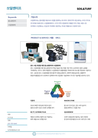 23 2025%uac15%uc6d0%ub300%ud559%uad50%uac15%uc6d0%ucc3d%uc5c5%ubcf4%uc721%uc13c%ud130%uc878%uc5c5%uae30%uc5c5 %uc18c%uac1c%uc11c%ub300%ud45c %uc774 %uc8fc %uc601%uc804%ud654031-701-6441%uc774%uba54%uc77cturfsoil@daum.net%uae30%uc5c5%uc18c%uac1cPRODUCT & SERVICE | %uc81c%ud488%u00b7%uc11c%ube44%uc2a4%uc3d8%uc77c%uc564%ud130%ud504Keywords%ubb3c %uc21c%ud658%uc7a5%uce58%uc218%uc9c8%uc815%ud654%uc81c%uc3d8%uc77c%uc564%ud130%ud504%ub294 %uace8%ud504%uc7a5%uc744 %ub300%uc0c1%uc73c%ub85c %uc0ac%uc5c5%uc744 %uc6b4%uc601%ud558%ub294 %ud68c%uc0ac%uc774%ub2e4. %ud604%uc7ac %uc8fc%ub825 %uc0ac%uc5c5 %ubd84%uc57c%ub294 %ud06c%uac8c 2%uac00%uc9c0%ub85c %uc794%ub514%uc804%uc6a9 %ube44%ub8cc%uc640 %ud3f0%ub4dc %uc218%uc9c8%uc815%ud654%uc81c%uc774%ub2e4. 2%uac00%uc9c0 %uc8fc%ub825 %uc0ac%uc5c5%ubd84%uc57c%uc758 %uc81c%ud488%uc740 %ubbf8%uad6d, %ub3c5%uc77c, %ud504%ub791%uc2a4 %ub4f1 %uc678%uad6d%uc5d0%uc11c %uc218%uc785%ud574%uc624%ub294 %uc218%uc785%uc0b0%uacfc %uad6d%ub0b4%uc5d0%uc11c %uc0dd%uc0b0%ud558%ub294 %uad6d%ub0b4%uc0b0 %uc81c%ud488%uc73c%ub85c %uad6c%uc131%ub418%uc5b4 %uc788%ub2e4.%ud3f0%ub4dc %uc218%uc9c8 %uac1c%uc120%uc744 %uc704%ud55c %ubb3c %uc21c%ud658%uc7a5%uce58%uc640 %uc218%uc9c8%uc815%ud654%uc81c%ud3f0%ub4dc %uc218%uc9c8%uc815%ud654%ub97c %uc704%ud55c %ubb3c %uc21c%ud658%uc7a5%uce58%uc758 %ud575%uc2ec%uae30%uc220%uc740 %uc5d0%ub108%uc9c0%ub97c %uac00%uc7a5 %uc801%uac8c %uc18c%ubaa8%ud558%uba74%uc11c %ubb3c%uc758 %uc21c%ud658%uc744 %uadf9%ub300%ud654%ud558%ub294 %uac83%uc774%ub2e4. %ud604%uc7ac %uac1c%ubc1c%uc911%uc778 %uc218%uc9c8%uc815%ud654%uc6a9 %ubbf8%uc0dd%ubb3c%uc81c%ud488%uc740 %ubc15%ud14c%ub9ac%uc544%uc640 %ud6a8%uc18c%ub97c %uc8fc%uc6d0%ub8cc%ub85c %uc0ac%uc6a9%ud558%uace0 %uc788%ub2e4. %uace8%ud504%uc7a5 %ud3f0%ub4dc %uc218%uc9c8%uc815%ud654%ub97c %uc704%ud55c %ubb3c%ub9ac%uc801 %ubc29%ubc95(%uc21c%ud658%uc7a5%uce58), %ud654%ud559%uc801 %ubc29%ubc95(%uc0b4%uc870%uc81c), %uc0dd%ubb3c%ud559%uc801 %ubc29%ubc95(%ubbf8%uc0dd%ubb3c)%uc744 %ubaa8%ub450 %ubcf4%uc720%ud574 %ud0c0 %uc5c5%uccb4%uc5d0 %ube44%ud574 %uc218%uc9c8%uc815%ud654 %uae30%uc220%uba74%uc5d0%uc11c %uc6b0%uc218%ud55c %uae30%uc220%ub825%uc744 %ubcf4%uc720%ud558%uace0 %uc788%ub2e4.fifffflffifl%u001a%u0019%u0018%u0017%ub514%ud4e8%uc800%uc720%uc18d%uc774 %ube60%ub978 %uc790%uc5f0%uc0c1%ud0dc %ud558%ucc9c%uacfc %uac19%uc774 %uc6a9%uc874%uc0b0%uc18c%ub7c9%uc774 %ub192%uc740 %uac74%uac15%ud55c %uc0c1%ud0dc%ub97c %uc720%uc9c0MACRO ZYME%ubb3c %uc18d%uc758 %uc778%uacfc %uc9c8%uc0b0, %ud3f0%ub4dc %ubc14%ub2e5 %uc2ac%ub7ec%uc9c0 %uce35%uc744 %ubd84%ud574%ud558%uace0 %uc218%uc9c8%uc744 %uac1c%uc120BS 77, CUTRINE PLUS%ud574%ucef4%uacfc %uc870%ub958%uc5d0 %uc120%ubcc4%uc801%uc73c%ub85c %uc791%uc6a9%ud558%ub294 %ud654%ud559 %uc81c%ud488%uc73c%ub85c %uc870%ub958%ub97c %uc81c%uac70QUARENEW%uc870%ub958%uac00 %uad11%ud569%uc131%uc5d0 %uc774%uc6a9%ud558%ub294 %ube5b%uc758 %ud30c%uc7a5%ub300 %uc911 %uccad%uc0c9 %ud30c%uc7a5%ub300%ub97c %ubc18%uc0ac%uc2dc%ucf1c %uc870%ub958 %ubc88%uc2dd %uc800%ud574